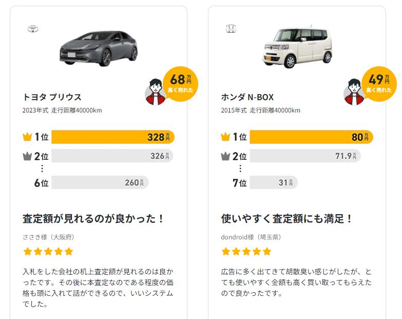 私も通常のディーラー下取りよりも25万円ほどUPしました。