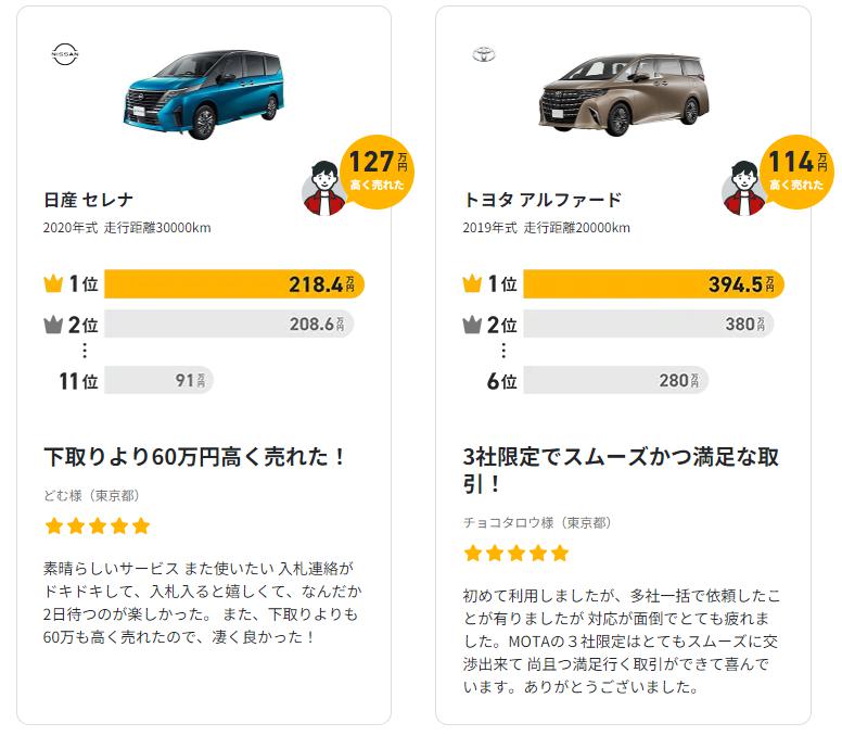 ※MOTAのMOTA車買取登録店 お客様口コミ一覧参照